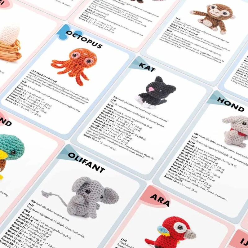 Inclusief boekje met essentiële informatie over materialen en benodigdheden, een toelichting op de patronen en uitleg over gebruikte haaktechnieken.